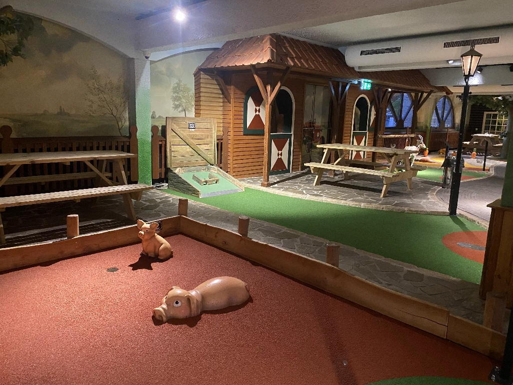 Buiten de verschillende faciliteiten zoals Bowlen, midgetgolf, Snooker is er ook een groot tropisch zwembad met een glijbaan, whirlpools, sauna en stoombad. En waar heb je nu een regenbui tijdens het zwemmen?